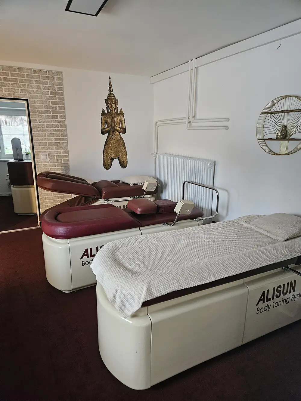 In meinem Slender Studio stehen sechs Slender Tische für dich bereit. Ich freue mich auf deinen Besuch und stehe dir bei deinem Training mit Slendern gerne zur Seite. Ziel ist es, gelenkschonend abzunehmen und den Körper durch sanfte Bewegung zu formen.