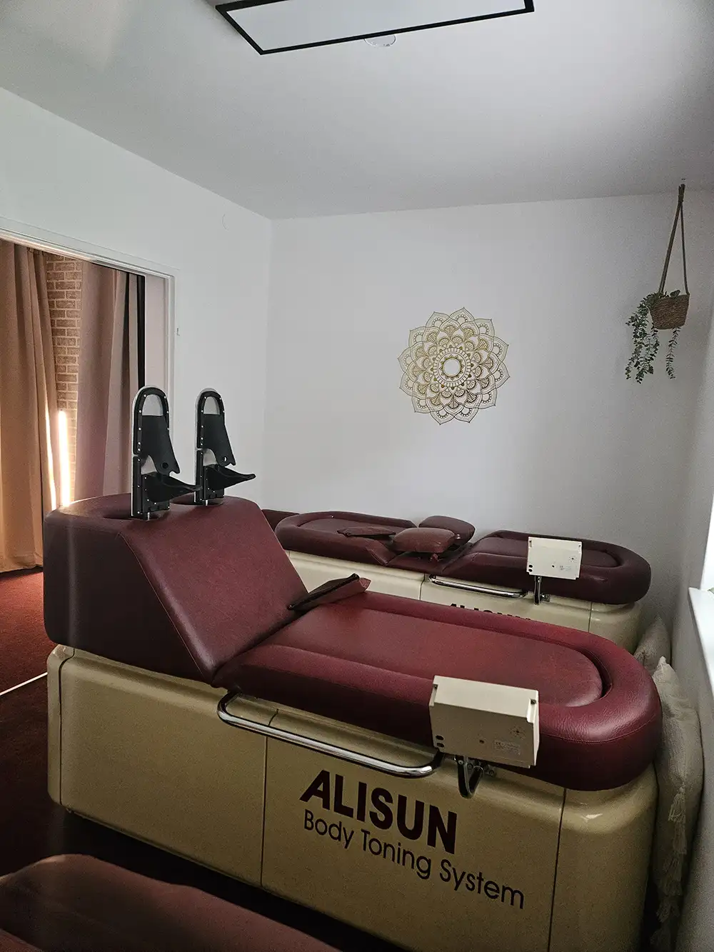 Unsere Tische trainieren jeweils einen bestimmten Körperteil, sie arbeiten elektromechanisch. Durch die sanften Bewegungen von Bauch, Rücken und Beinen in Kombination mit isometrischen Übungen, bei denen du ein bisschen mitarbeitest, wird der Kreislauf aktiviert und der Organismus mit Sauerstoff versorgt. Fettsäuren werden abgebaut. Du fühlst dich aktiver und fitter.